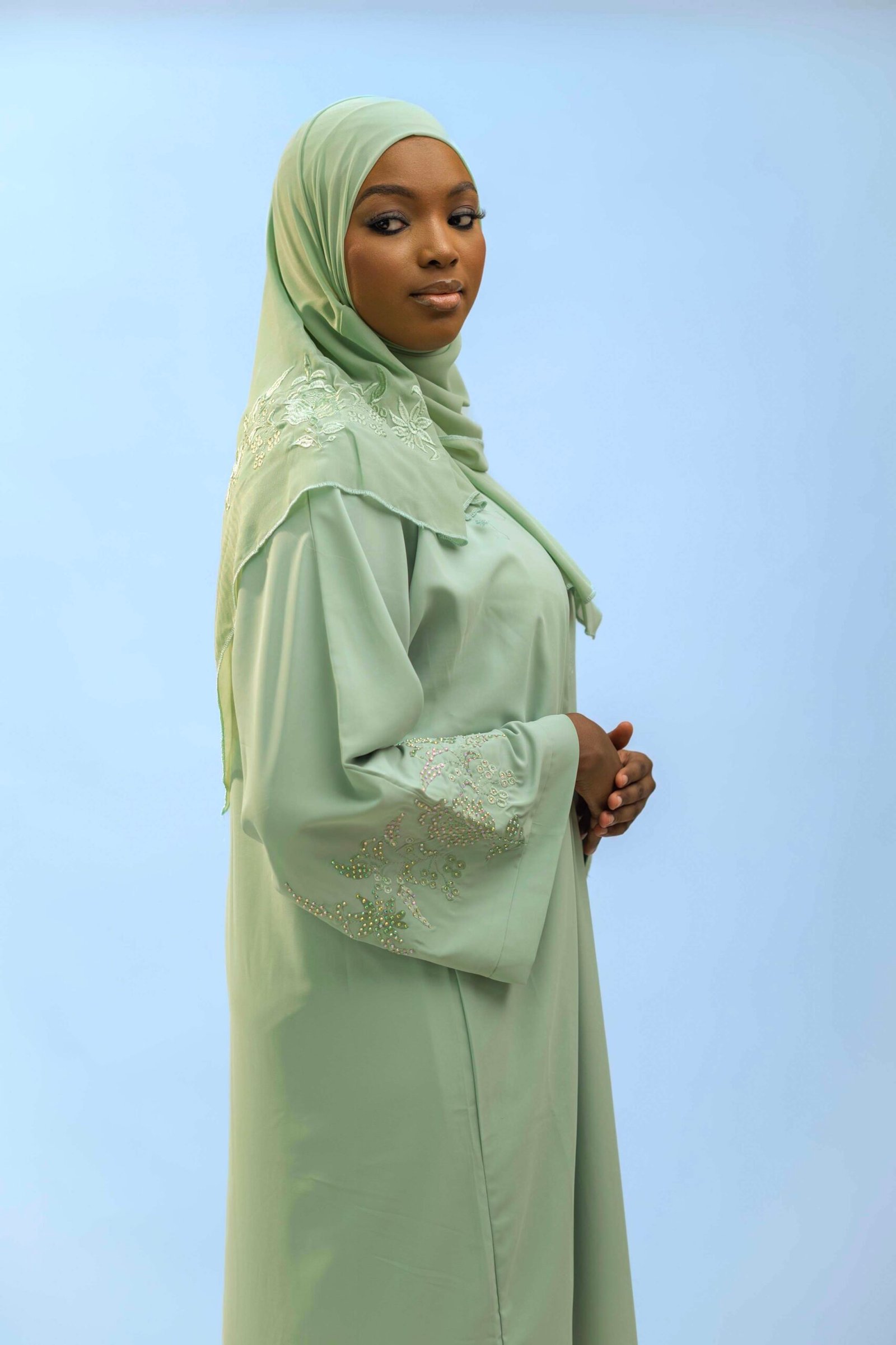 Discover the epitome of elegance with our Embroidery with Stone Details Abaya, where intricate craftsmanship meets modern sophistication. This stunning piece features delicate embroidery that weaves beautiful patterns across the fabric, while shimmering stone embellishments add a touch of glamour and refinement.